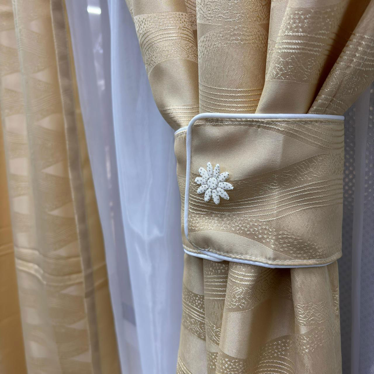 Nuestra cortina con velo, Confeccionada en tela jacquard de alta calidad, combina elegancia, funcionalidad y estilo para transformar tus espacios, aporta un diseño sofisticado y duradero, mientras que el velo integrado proporciona un efecto de luz suave y natural, manteniendo la privacidad sin perder luminosidad.