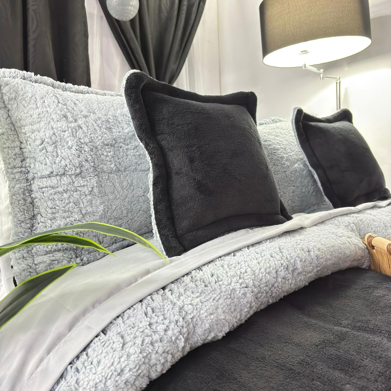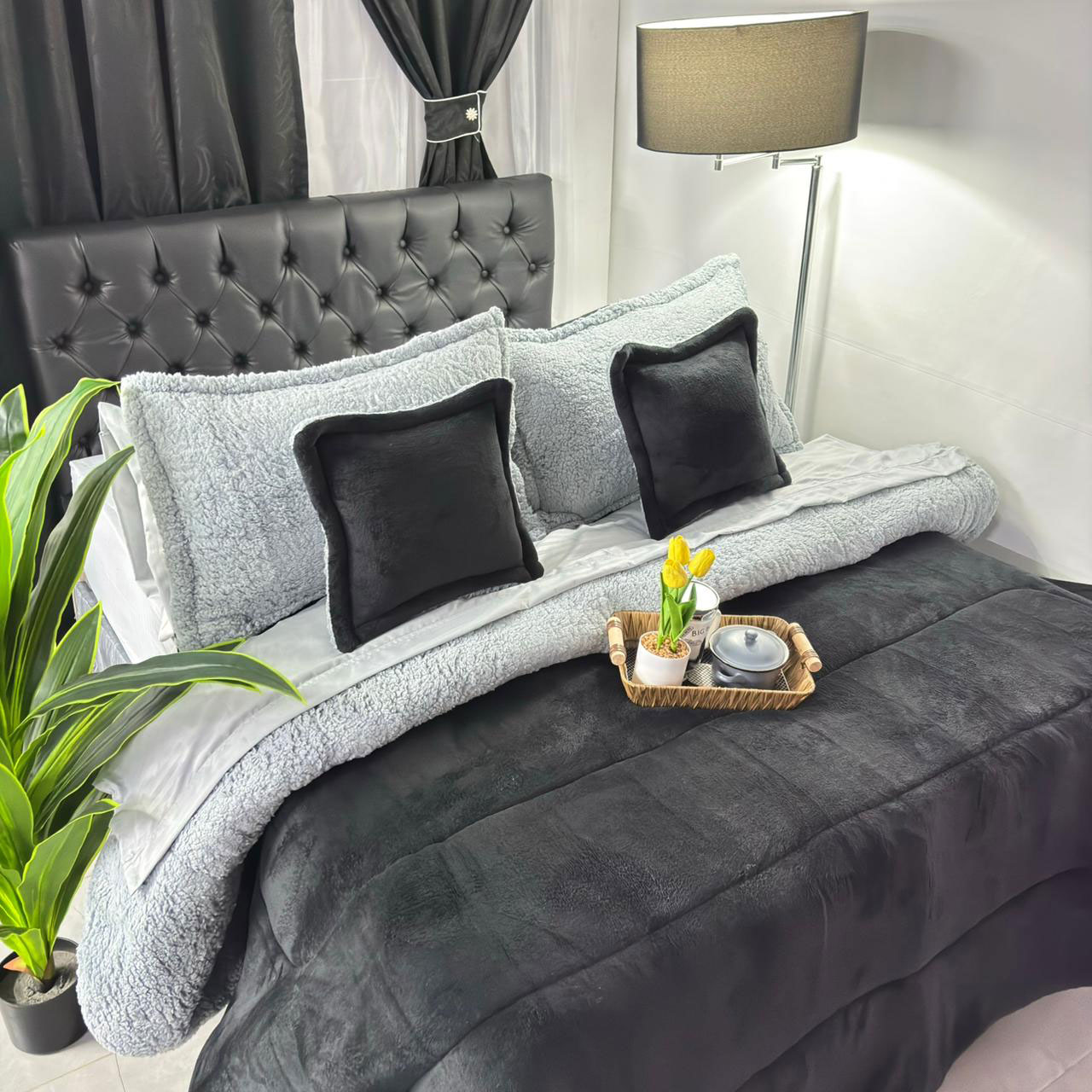 Disfruta de la suavidad y el abrigo con nuestro Edredón Berlín confeccionado con materiales que aportan tanto estilo como funcionalidad. La parte superior está hecha en piel de durazno, una tela aterciopelada al tacto que aporta elegancia y comodidad. El reverso está cubierto de ovejero, una textura esponjosa y cálida ideal para los días fríos.