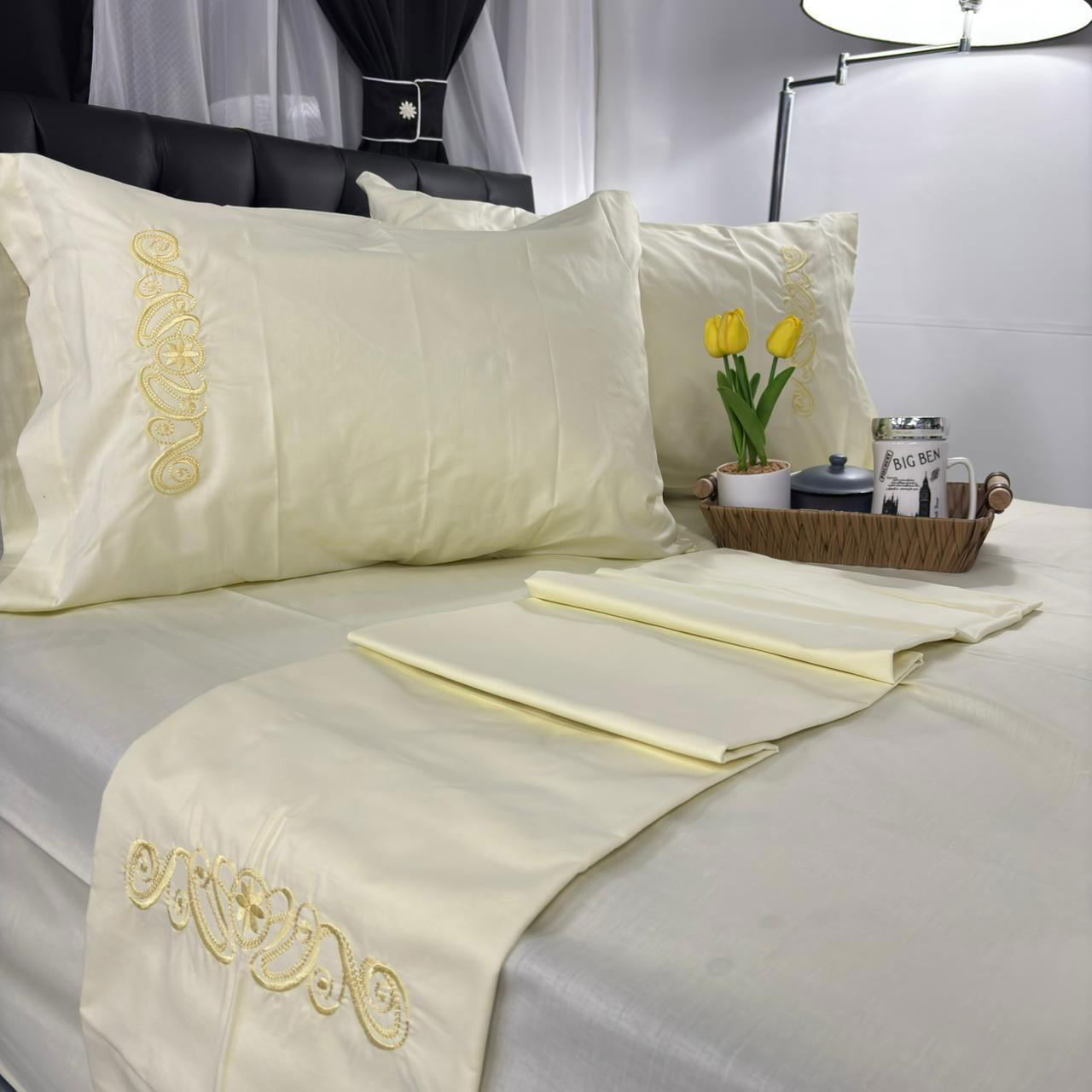 Juego de Sábanas 144 Hilos Bordada Amarillo
