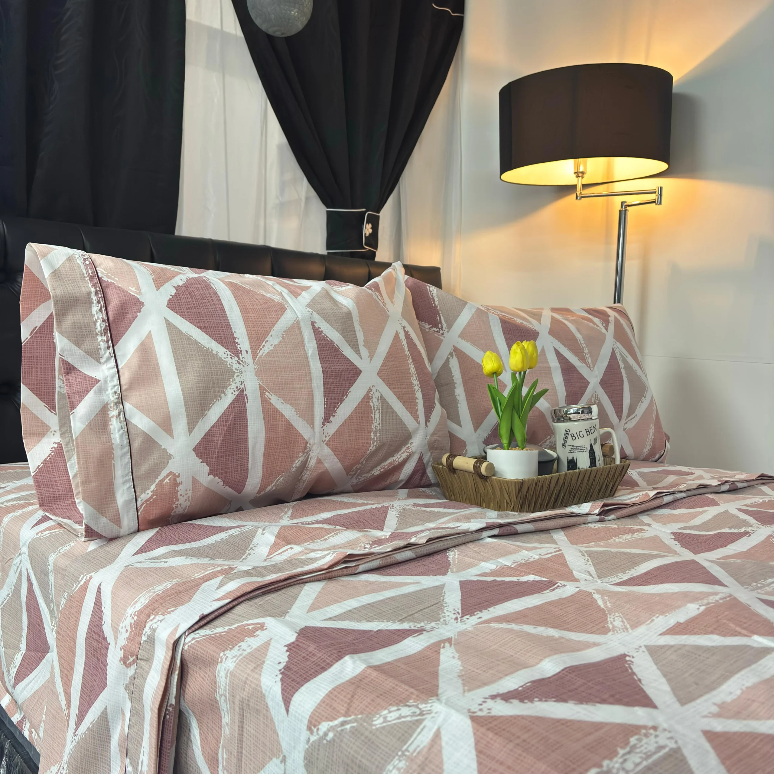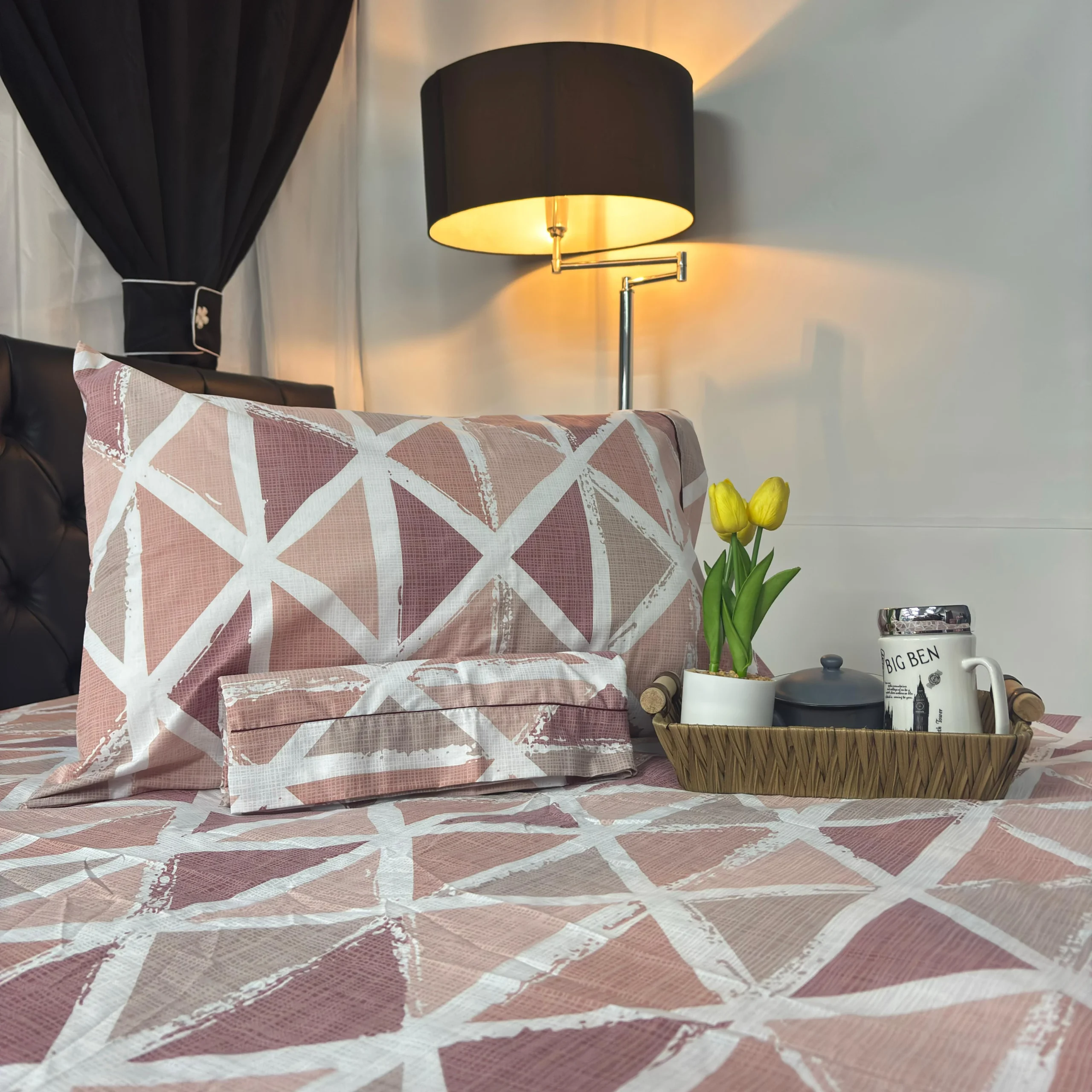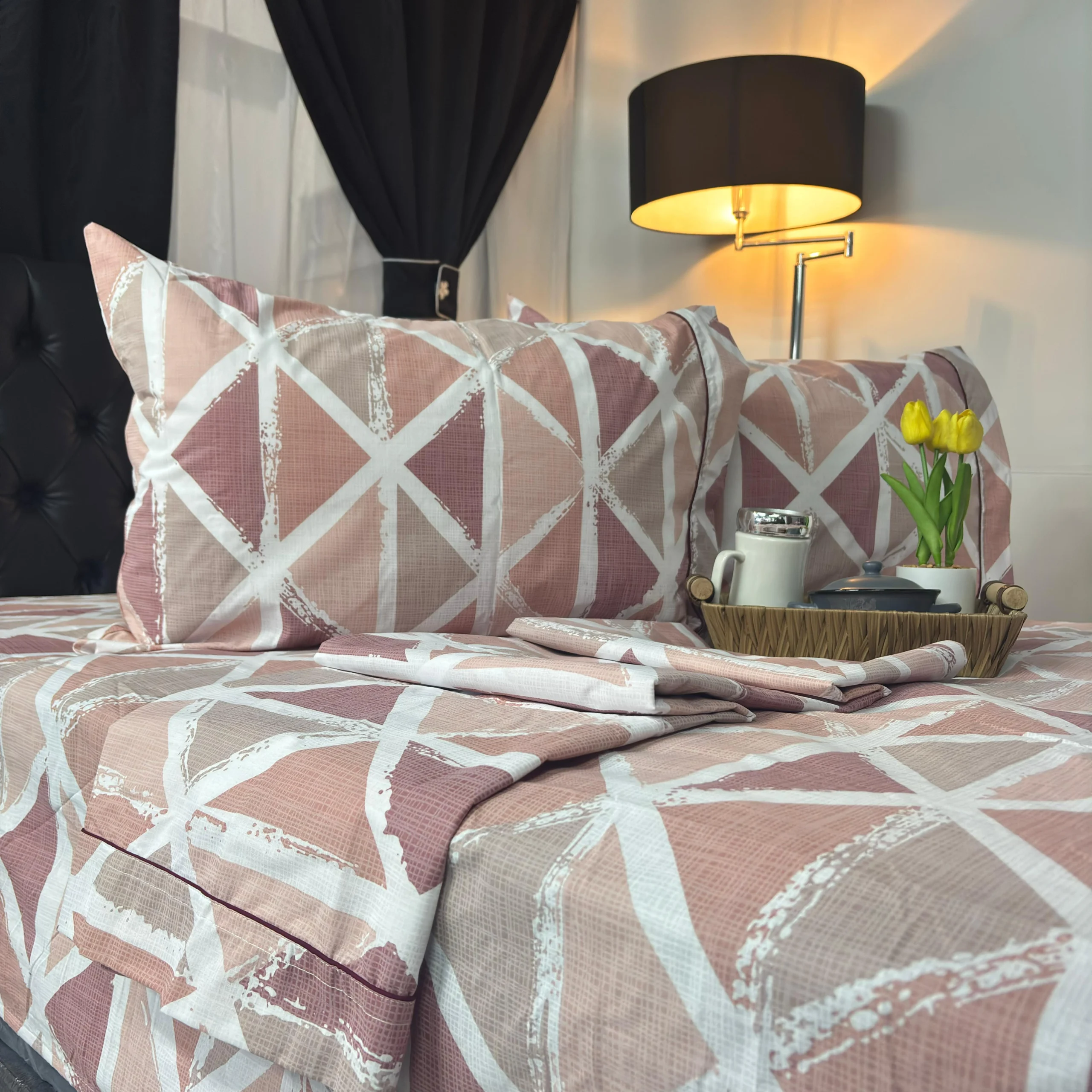 Disfruta del equilibrio ideal entre suavidad, frescura y resistencia con nuestro juego de sábanas estampadas de 144 hilos. Su tejido en mezcla 50% poliéster y 50% algodón ofrece una textura ligera y transpirable, que asegura noches de descanso confortable y un mantenimiento sencillo. El diseño estampado aporta estilo y un toque decorativo único a tu habitación.