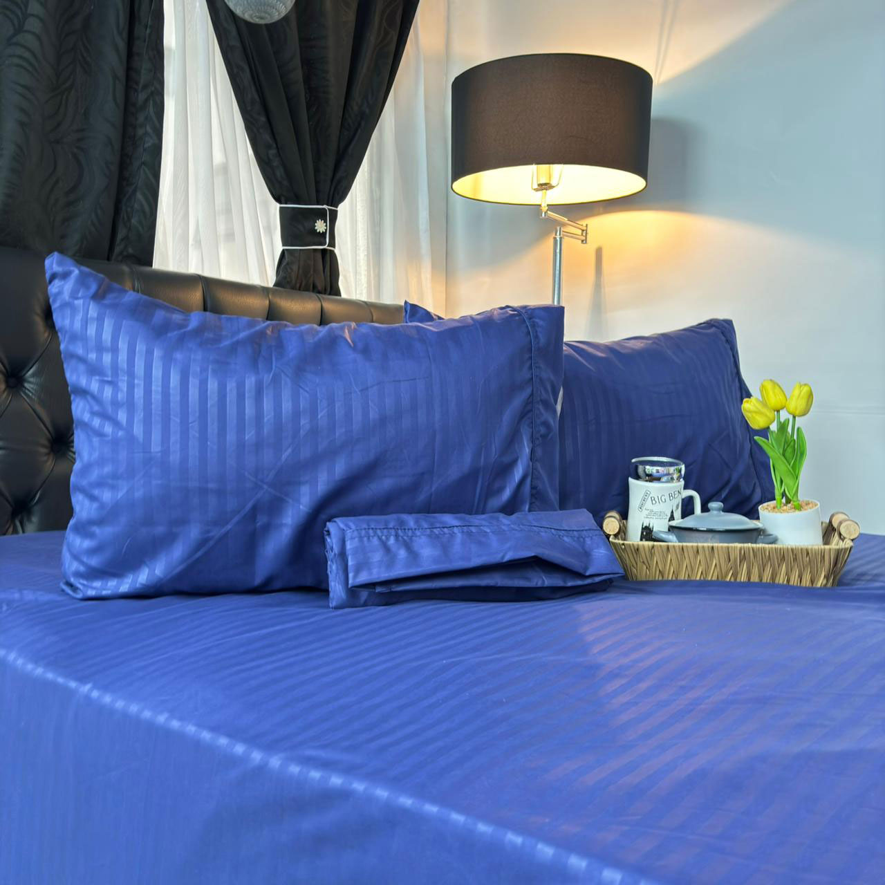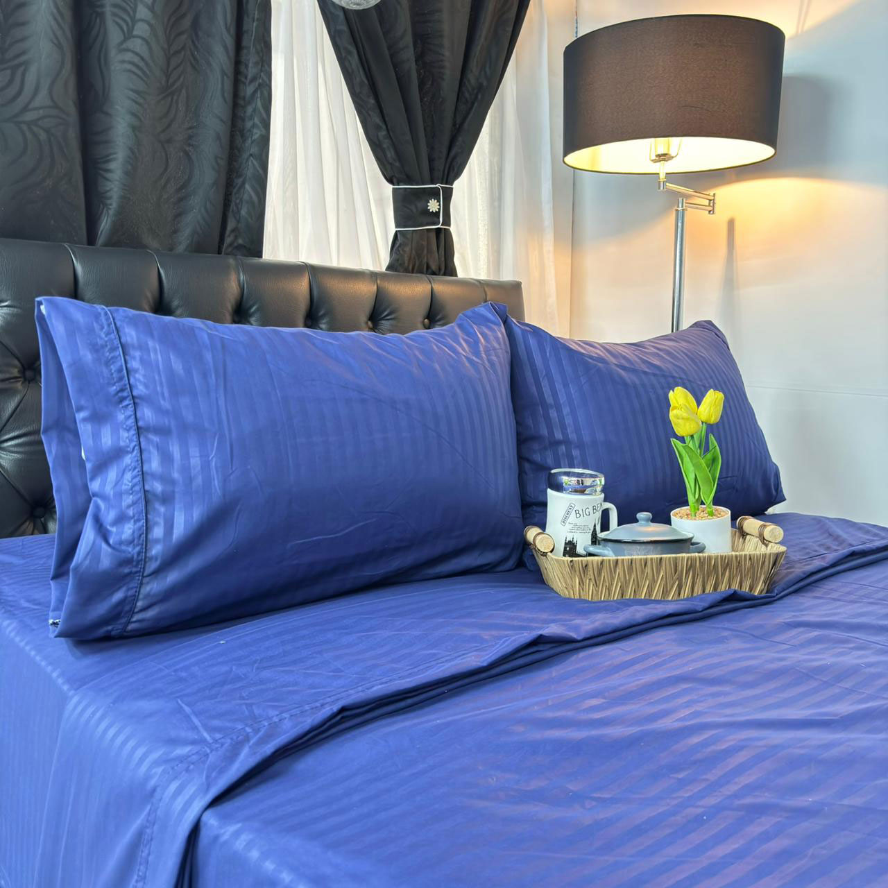 Nuestro Juego de Sabanas es elaborado en tela poli-algodón 50% poliéster y 50% algodón, este juego de sábanas combina la resistencia del poliéster con la suavidad y frescura del algodón. Su tejido es transpirable, ligero y de fácil cuidado, lo que garantiza durabilidad y comodidad en cada uso. Ideal para mantener la cama con un aspecto impecable y práctico en el día a día.