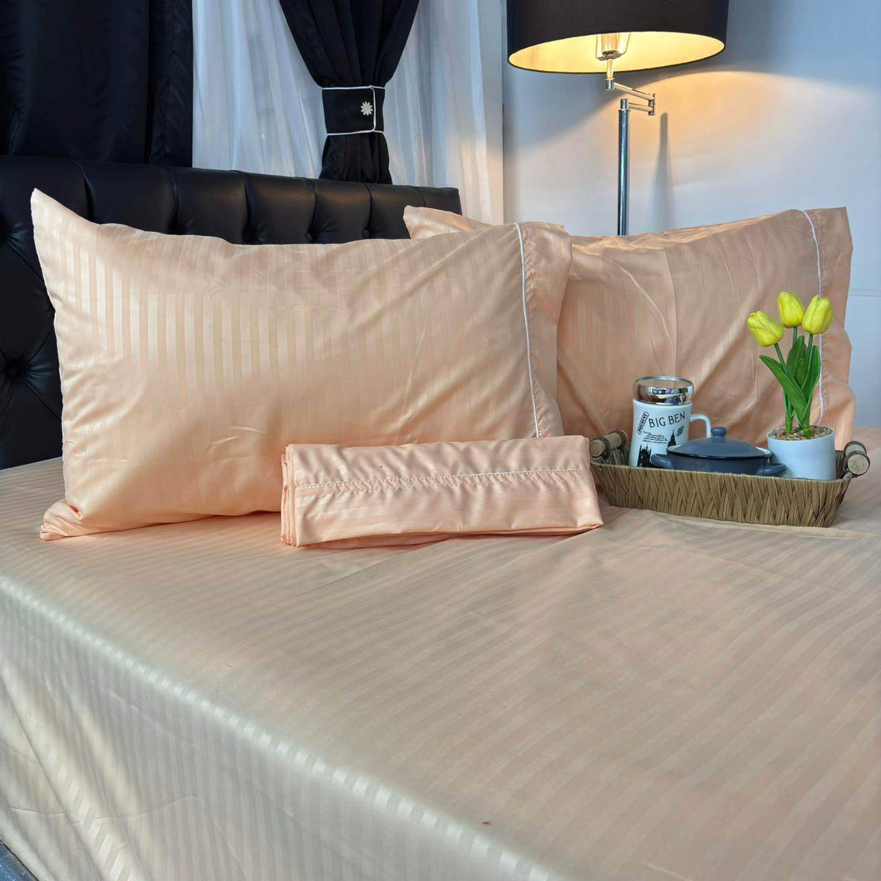 Nuestro Juego de Sabanas es elaborado en tela poli-algodón 50% poliéster y 50% algodón, este juego de sábanas combina la resistencia del poliéster con la suavidad y frescura del algodón. Su tejido es transpirable, ligero y de fácil cuidado, lo que garantiza durabilidad y comodidad en cada uso. Ideal para mantener la cama con un aspecto impecable y práctico en el día a día.