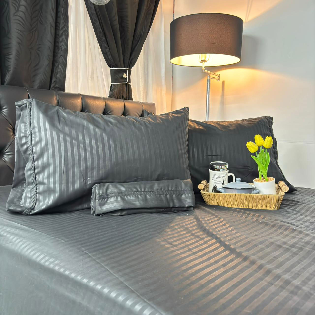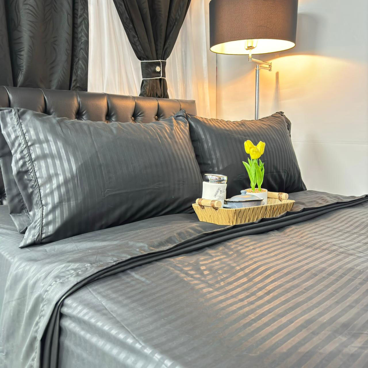 Nuestro Juego de Sabanas es elaborado en tela poli-algodón 50% poliéster y 50% algodón, este juego de sábanas combina la resistencia del poliéster con la suavidad y frescura del algodón. Su tejido es transpirable, ligero y de fácil cuidado, lo que garantiza durabilidad y comodidad en cada uso. Ideal para mantener la cama con un aspecto impecable y práctico en el día a día.
